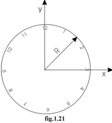 Assume come sistema di riferimento il sistema cartesiano ortogonale con origine nel centro (vedi fig.1.21). Indica con R la lunghezza della lancetta dei secondi, che equivale al raggio della circonferenza descritta dalla punta (*).