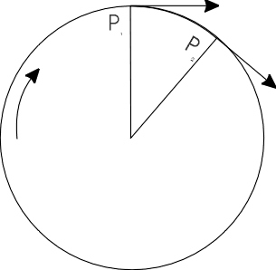 Roberto disegna i vettori velocità in P1 e P2. Riflettendo gli sorge un dubbio: è vero che la velocità in ogni punto ha lo stesso valore e il moto lungo la circonferenza è uniforme, ma in P2 la direzione è diversa che in P1.